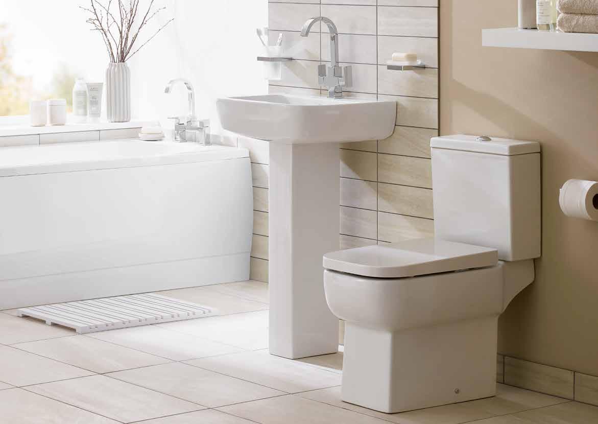 Close Coupled open Back WC Pack, Soft-Close Seat, 550mm Basin and Full Pedestal