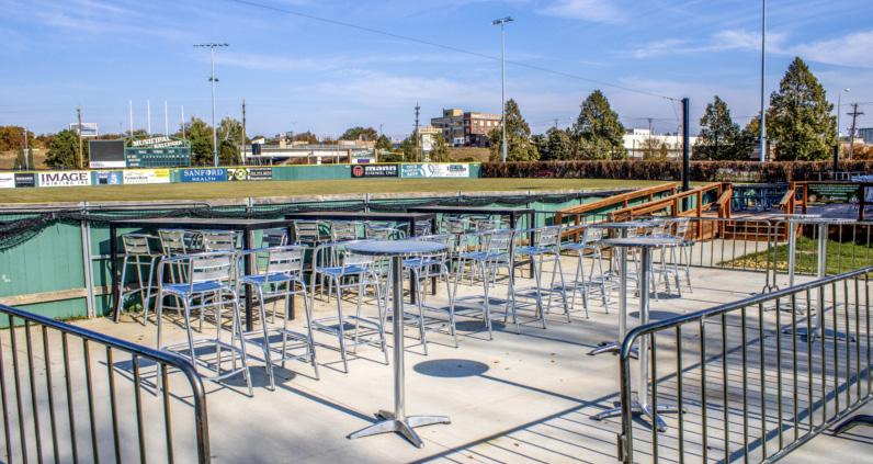 The new Fireside Office Solutions Dugout Club is a private area next to the Fireside Office Solutions Party Deck. The dugout area seats up to 45 people and includes group-style high-top tables and a bar drinks rail with seats right next to the field. Tickets to the area include five innings of all-inclusive