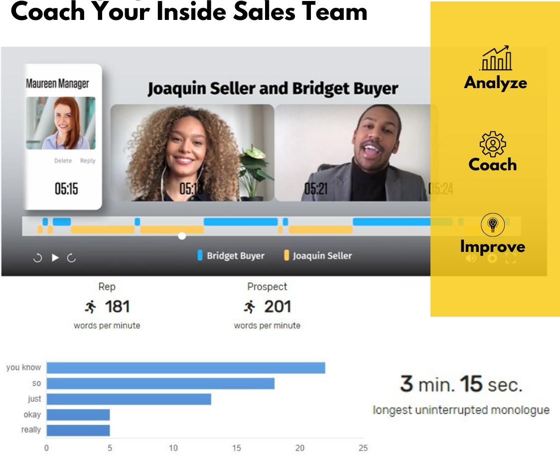 power AI gives managers as they use it to become better managers and coaches. Brian says: “Using AI, a manager gains clear and immediate insight about the patterns of their team; things unlikely to be sniffed out when just listening to a few random calls. Smart data points like words per minute, call transitions and use of keywords are identified, organized and compared across multiple reps.” For sales leaders and managers, seeing these trends across your entire team is crucial to understanding areas to