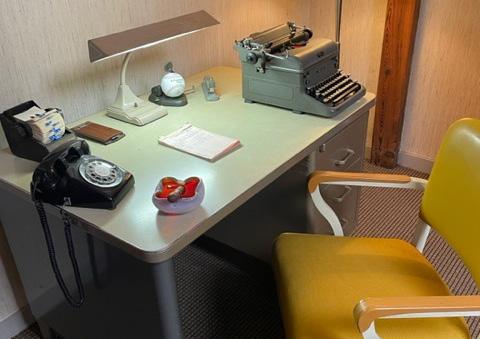 All of the items also carry a special sentimental value for Kendall as they have been gathered over two generations working in the industry. His father started working for Barefield, one of the 50 original North American Steelcase dealers, in the mid-1950s and assembled the Steelcase 1400 series “tank desk” from spare parts. Discovering the desk while clearing out a storage building at home gave Kendall the idea to create the area.