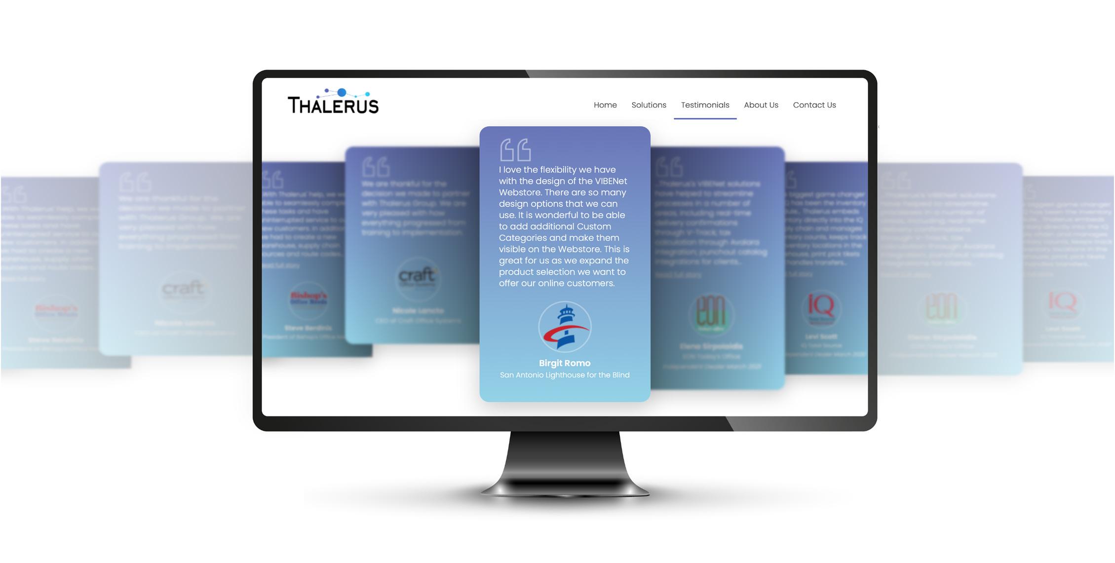 saving on shipping. The old way is to have products coming in from all different places. We have multiple warehouses, so all the products can come from one vendor: us. They get the print, promotional and office products in one shipment, and we ship them together, so it’s better logistics for us. Also, our reporting helps. Data is king! Anything our customers want to know, they can just log in to our site and find the information they need by department, cost center or individual. We have people switch to us just for our reporting.”