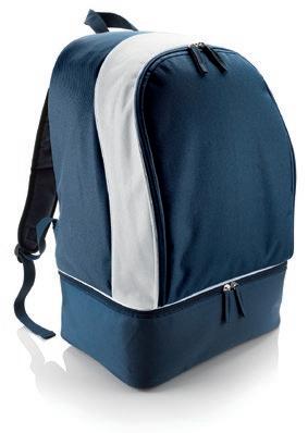 Zaino sport con ampio comparto principale con doppio fondo per le scarpe, spallacci imbottiti, maniglia per il trasporto, tira zip in tessuto con impunture in contrasto. Vaschetta in polionda assemblabile non inclusa, disponibile a richiesta.