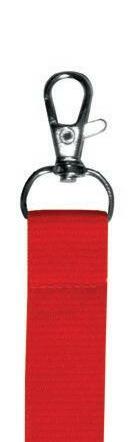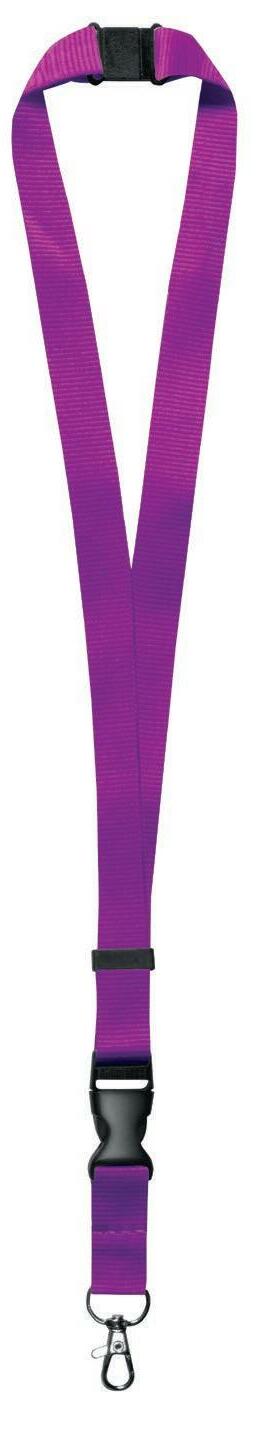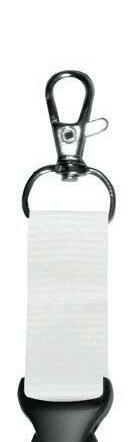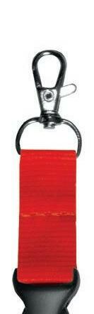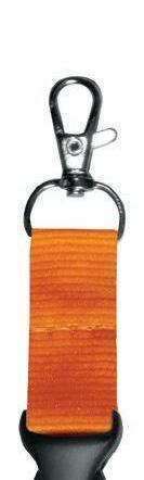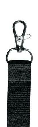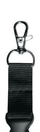 Laccio da collo con moschettone, fibbia e meccanismo di sicurezza.