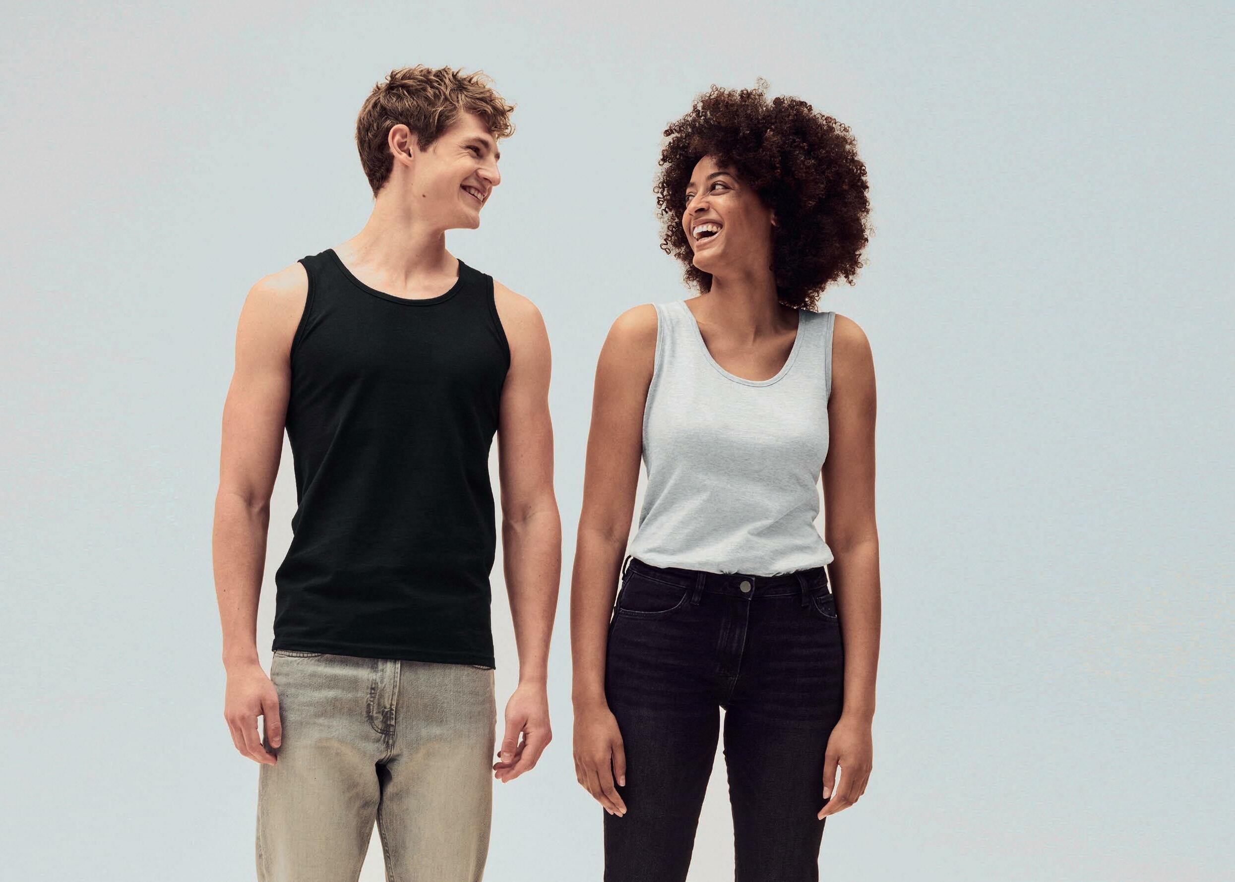 fucsia fluor fucsia black gold fluor FUF FU BK SYF Canotta Ibiza TSULIBZ Tessuto: 100% cotone Fluor Colors: 100% poliestere cotton touch • Canotta con spalline e ampia scollatura. Peso approx.: 120 gr/m2 Imballo: 10 pz Cartone: 50 pz S/M 54 / 46 L/XL 56 / 48