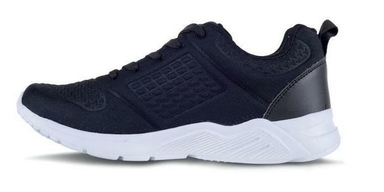 P4003 Tessuto: PU / EVA Taglia ITA: 36, 37, 38, 39, 40, 41, 42, 43, 44, 45, 46 Imballo: 1 Scarpa da tennis con lacci. Collo scarpa e linguetta superiore imbottiti. Fodera interna in tessuto morbido. Pannello sul tallone con logo. Suola in EVA ultraleggera e flessibile. Resistente al lavaggio SCARPA nero