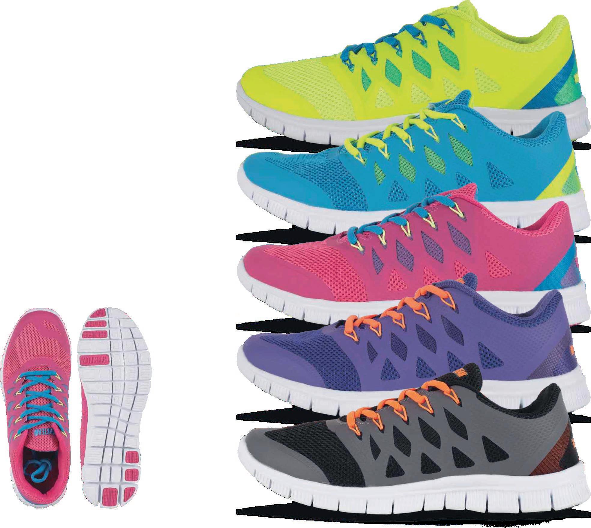 viola Tessuto: 100% Poliestere Taglia ITA: 36>46 Imballo: 1 pz Cartone: 10 pz • Sneakers sportive con riporti in rete. • Suola in EVA colore bianco. P4001 Scarpe Sportive