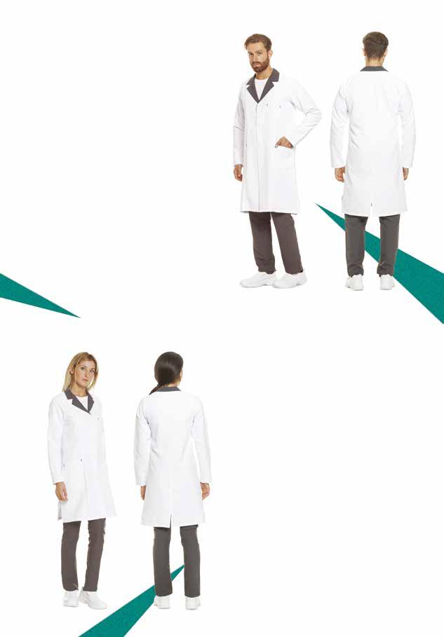 1 tasca lato cuore + 2 tasche laterali 4 Bottoni in plastica - martingala posteriore Certificato UNI EN ISO 13688:2013 100% cotone da 200 grammi mq. Sanforizzato (trattamento che riduce il restringimento al lavaggio) Lavabile a 60 gradi Produzione Tunisia FM035 11 Camice donna in Cotone
