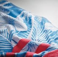 Asciugamani da spiaggia stampati a colori realizzati al 50% in cotone, al 20% in poliestere e 30% di RPET tracciabile RPET di REPREVE®.