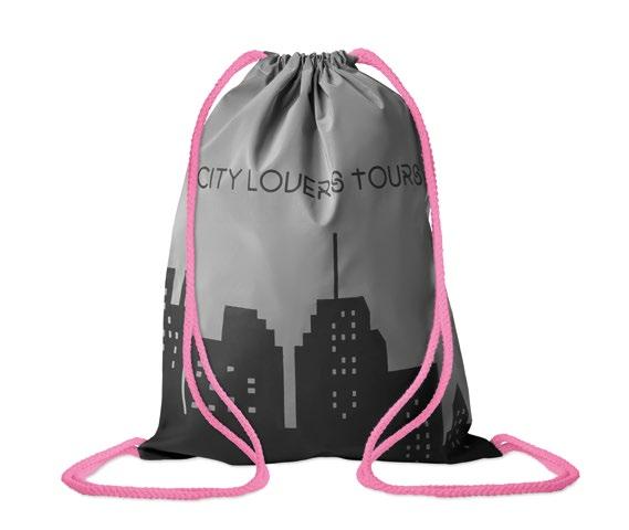 Fatevi notare! La sacca è realizzata in materiale riflettente . Grafica stampata a tutto campo con cordino un colore neon abbinato.