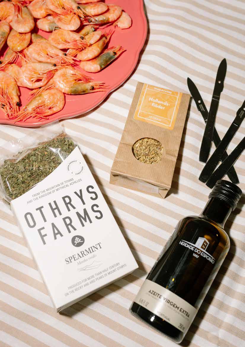Du får skaldjursknivar som är behjälpliga vid hårda skal. En olivolja behövs till det mesta om det så är brödet, salladen eller maten. Dessutom får du torkad mynta från Grekland som sätter en fräschör till det mesta.