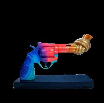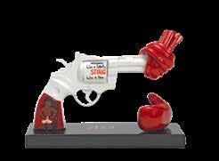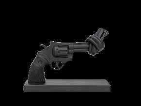 Mini bronze sculpture är en sju centimeter lång replika av Carl Fredrik Reuterswärds fredsverk ”Knotted Gun”. Revolvern med dess karaktäristiska knutna pipa är gjuten polerad brons och ingår Non-Violences Fine Art-kollektion.