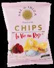 Tunna chips, av noga utvalda potatisar och med en aromatisk gyllene färg. Tillverkade försiktigt för hand med ren solrosolja för att få den rätta krispigheten och därtill Sal de Ibiza´s milda Fleur de sel på toppen.