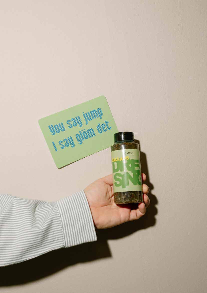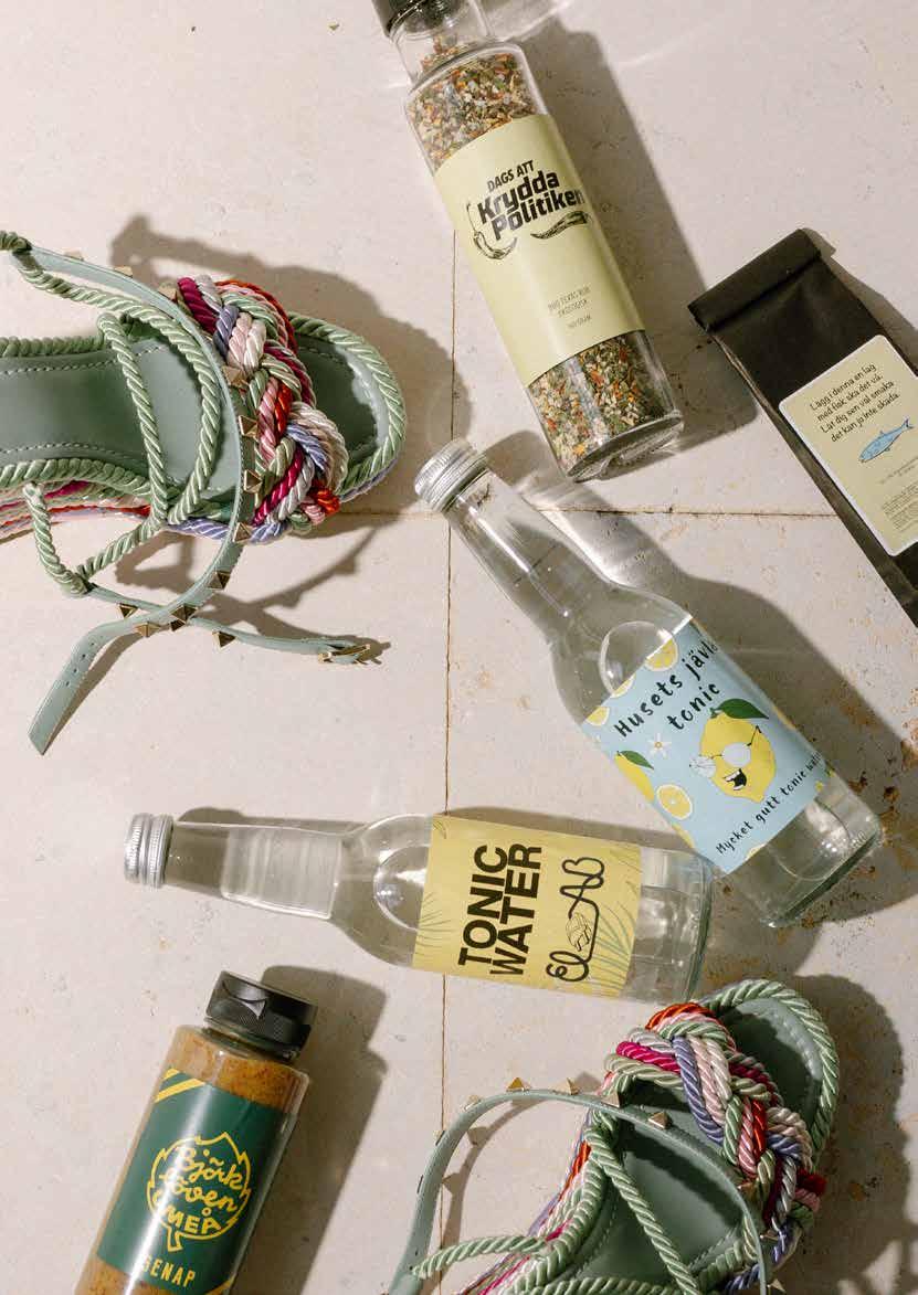 Allt du behöver till Midsommar! Eller påsk eller jul. Vi är ju fenomenala på att äta samma sak vid alla högtider så har du inte använt det till den ena så kan du använda det till den andra. Eller så använder du det bara när lusten faller på. Superfräscht krispigt knäckebröd med smak av persilja, gräslök och på toppen lite havssalt. Perfekt såväl på julbordet som på midsommarbordet. En burk med sardiner, gott att lägga på knäcket eller äta som det är, dessutom väldigt nyttigt. En sillinläggningskrydda där du enkelt lägger in din egen sill. Söt/stark slät senap som är perfekt till både dressingar och grillkorven. Skölj ner allt med lite mousserande äppelcider och nynna på en snapsvisa som du finner på det medföljande bladet.