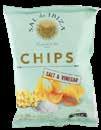 Tunna lättsaltade chips med vinäger smak, av noga utvalda potatisar och med en aromatisk gyllene färg. Tillverkade försiktigt för hand ren solrosolja för att få den rätta krispigheten och därtill Sal de Ibiza´s milda Fleur de sel på toppen.
