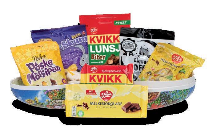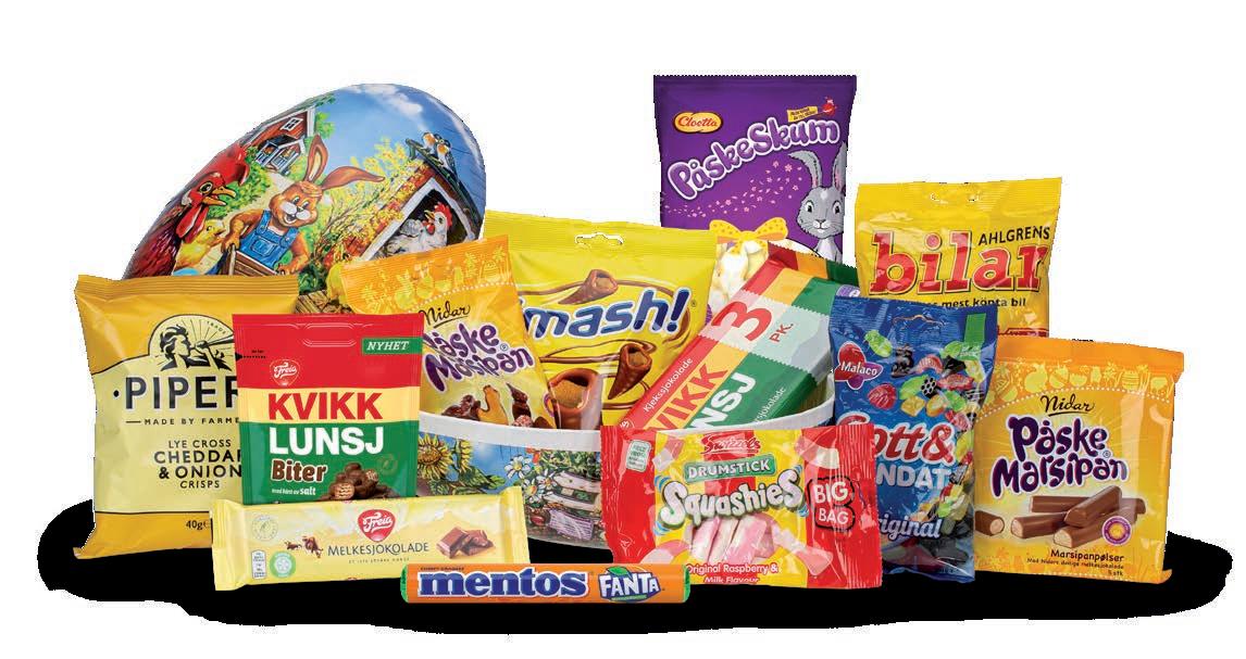 Posevarene som vi leverer i vårt påskesortiment består utelukkende av kjente merkevarer som Freia, Lily O’Briens, Nidar, Anthon Berg m fl.