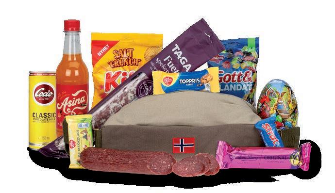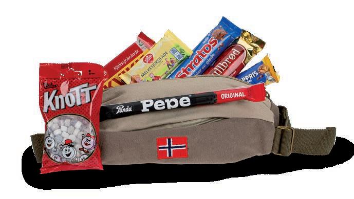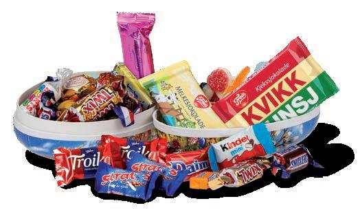 : Twist 145g, Walkers Liqourice 119g, Kvikk Lunsj biter 130g, Anthon Berg Fugleegg 124g, Anthon Berg Opera Mints 140g.