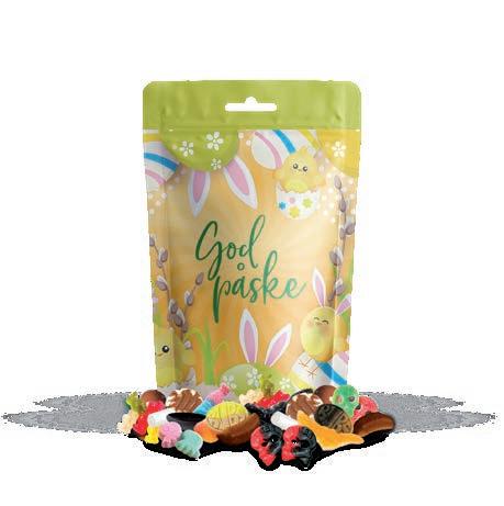 Innhold: Smågodt 1000g, IPB Classic 600g, Nidar Påske Marsipan 138g, Kolibriegg pose 168g, Anthon Berg Mandelegg 80g, Kvikk Lunsj 47g. Innholdet pakkes i tette resirkulerbare porsjonsposer.