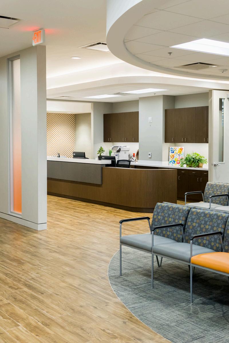 Inspired by the client’s vision, the design flows seamlessly melding treatment zones, clinical support, and administrative spaces into a patient-focused experience Every element is purposefully crafted to enhance movement,healing,andpeakperformance Cleanlinesand refined, durable materials shape a space that’s both professionalandinviting Thoughtfulcirculationpathsguide effortless navigation, creating an energized environment wherepatientscanrecover,andthrive