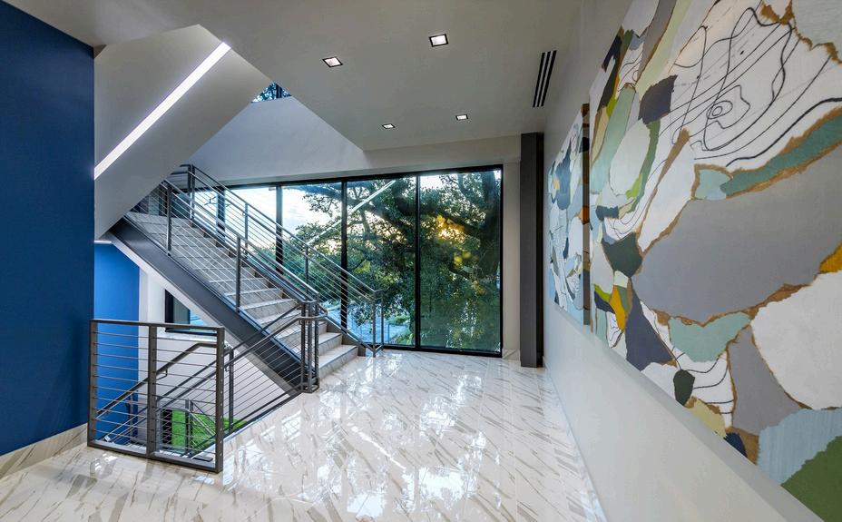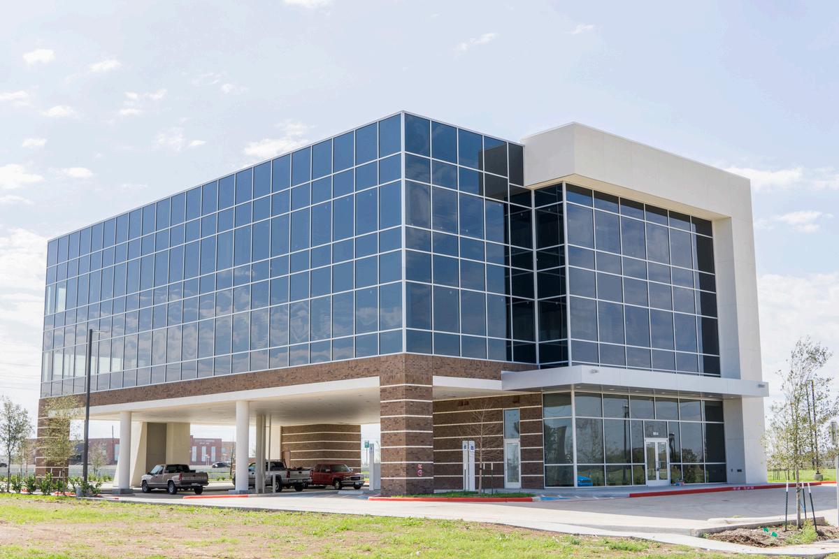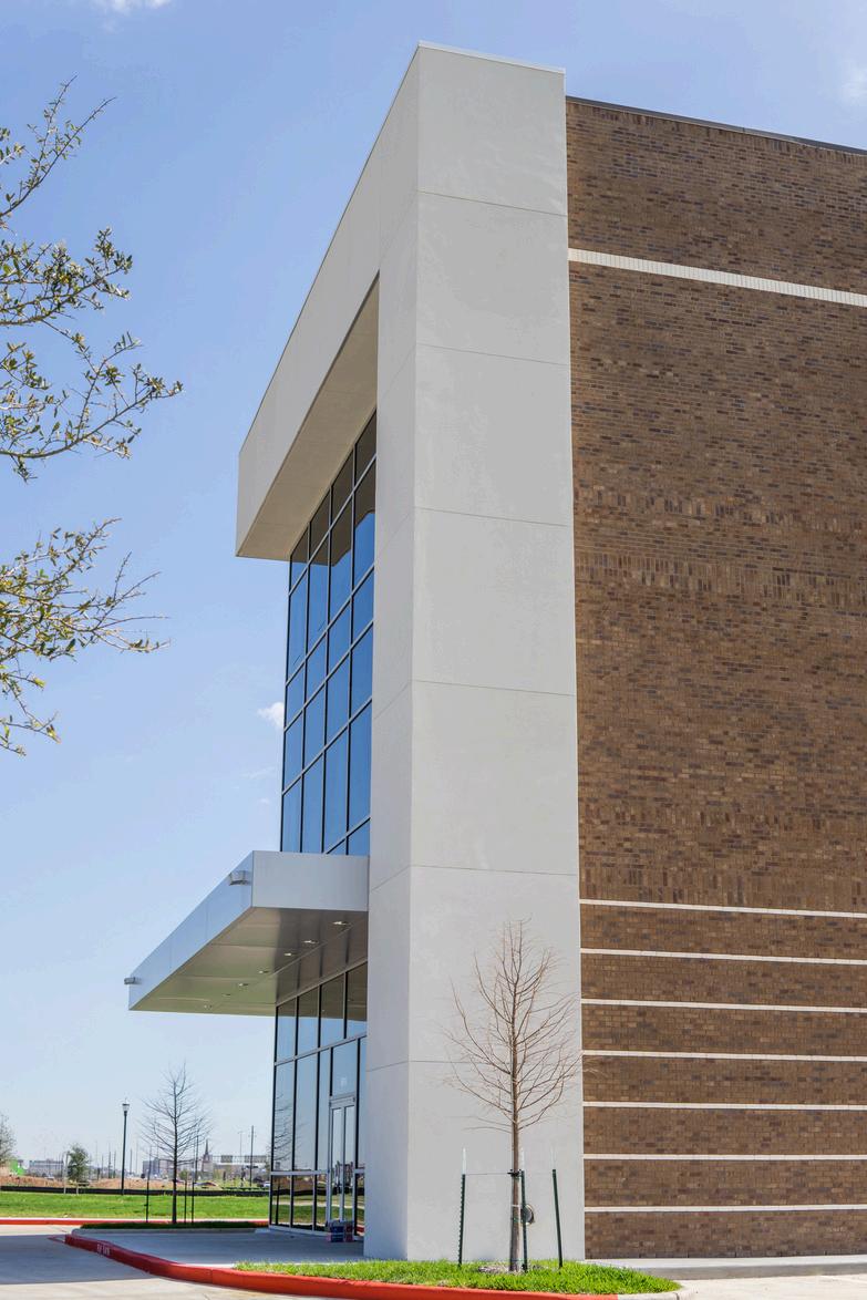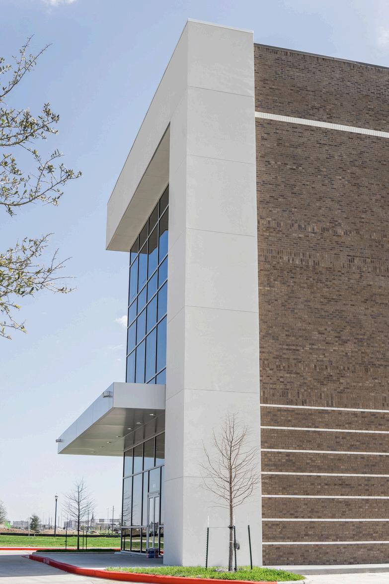 This dual-purpose facility combines modern medical office design with a high-functioning corporate headquarters Expansive storefront glazingbringsinnaturallight,whiledarkporcelainclad entry towers and angular brick elements create a strong, contemporary exterior aligned withtheclient’sbrandandlong-termgoals