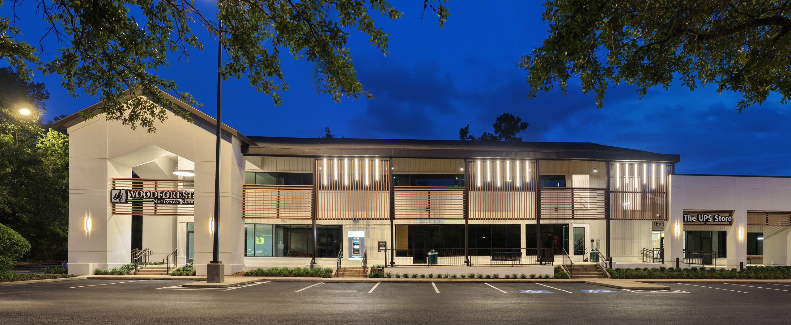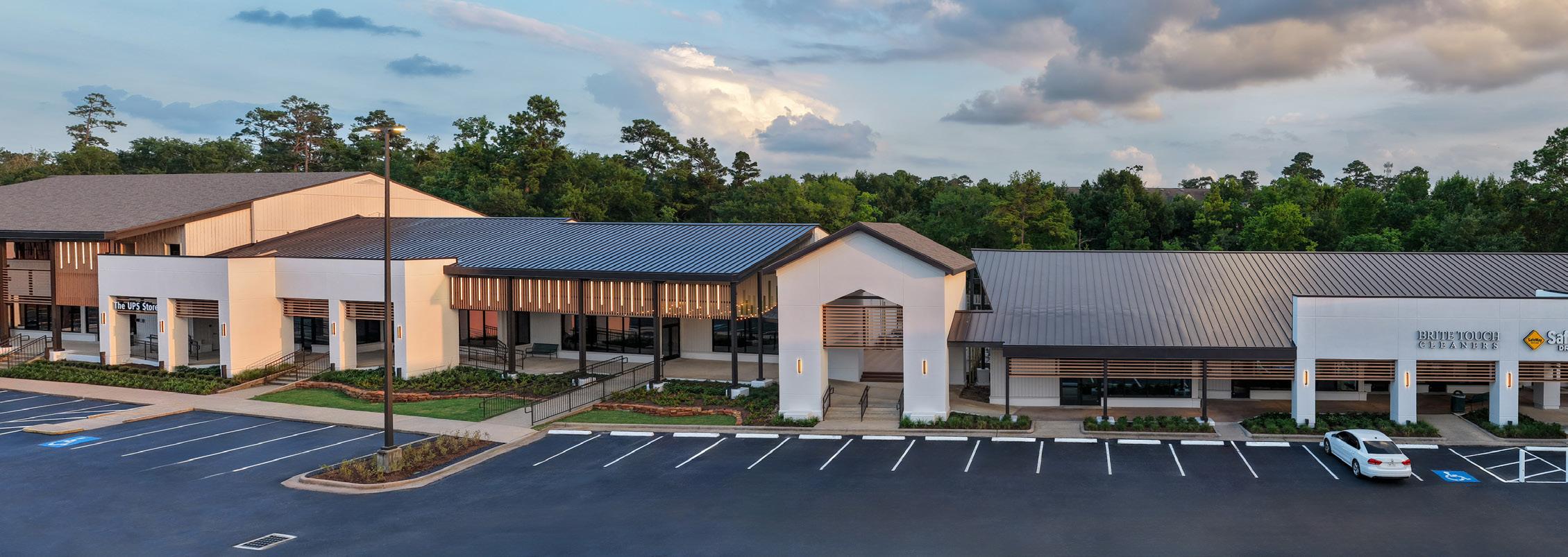 Grogan’s Mill Village Center is a façade remodel of a 32,200-square-foot adaptive reuse renovation, a recipient of a Development of Distinction award from the Urban Land Institute, located within the original village of Grogan’s Mill in The Woodlands, Texas. The two-level retail and office center, spanning more than 600 linear feet of façade, underwent a comprehensive architectural revitalization designed to modernize its appearance,