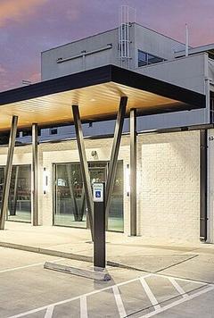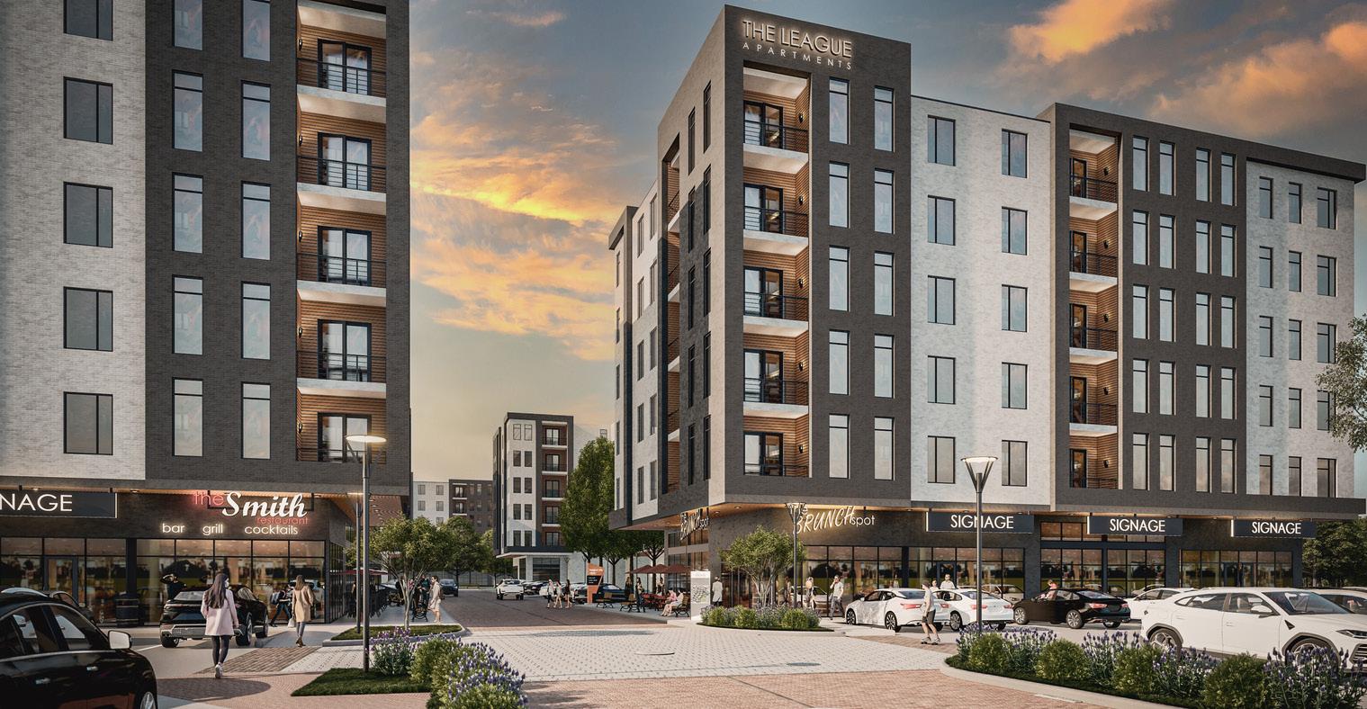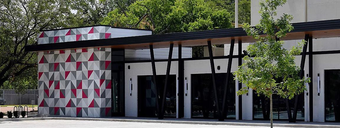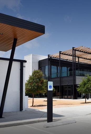 Positioned directly along the street with parking discreetly screened from view, the project prioritizes the pedestrian experience. Expansive canopies, textured concrete façades, and a geometric entry sequence establish a strong architectural identity—contributing to the continued revitalization of the Shepherd/Durham corridor.