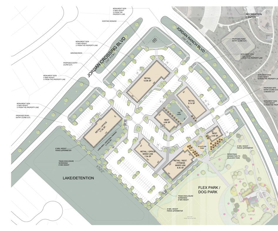 The Bend at Jordan Ranch is a 55,000 SF multibuilding mixed-use development located in the community of Fulshear. Key features include A Placemaking development, Modern farmhousestyle architecture, patio areas and central lawn, Open spaces integrated with Community Center and public park that is designed to support future retail and restaurant tenants.