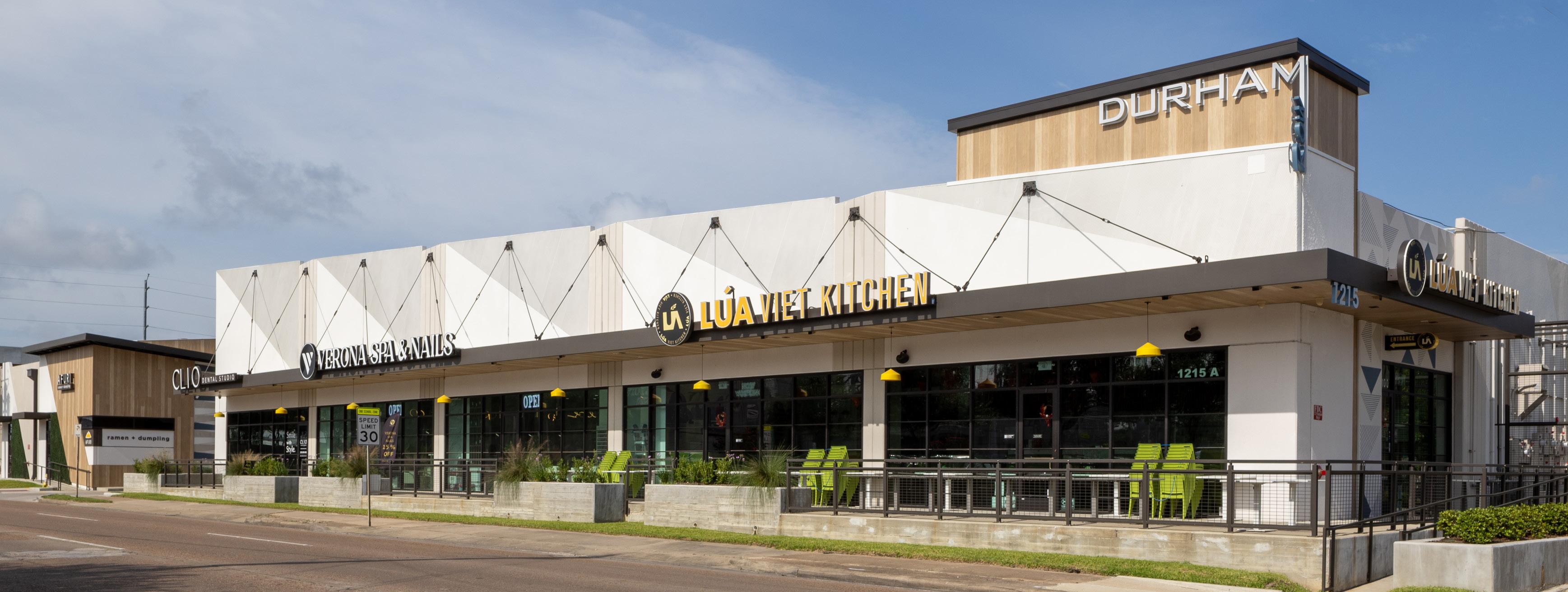 Durham Row is a two-story, 3,000-square-foot restaurant-focused retail destination located along the evolving Shepherd/Durham corridor in Houston’s Heights neighborhood. Designed to activate the urban edge, the development introduces a curated mix of culinary concepts and neighborhood-serving uses within a compact, walkable setting.