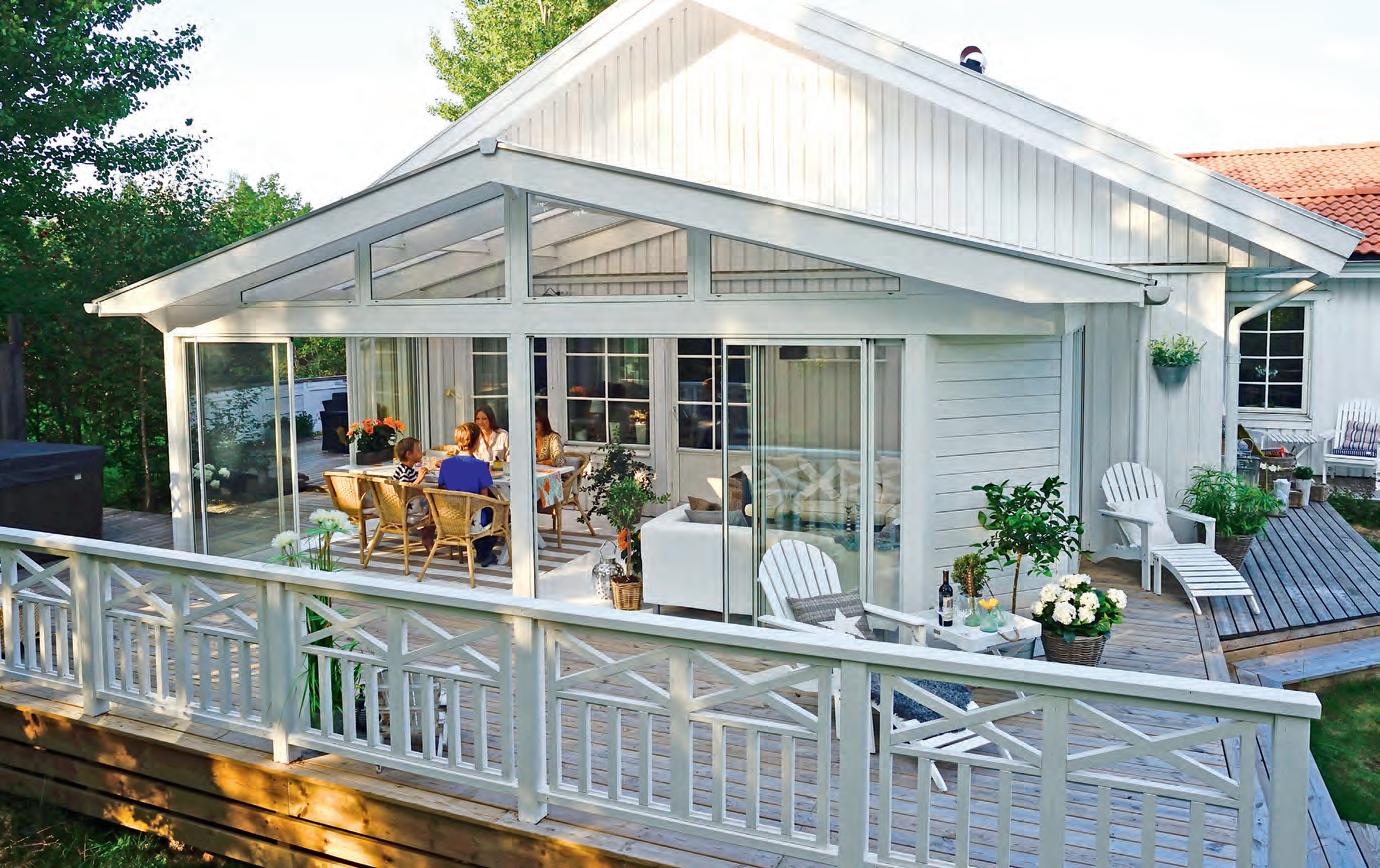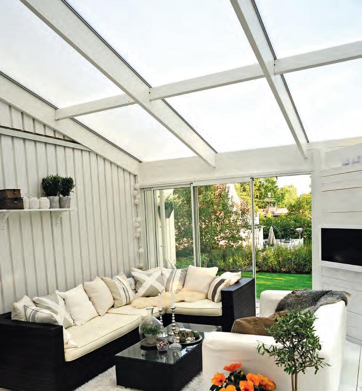 Vores profilsystemer har dobbelte gummilister, så alt slutter tæt. Bundprofil i aluminium og en hvid overprofil giver et smukt udseende. Taget har Xstruktur, der giver den bedste bæreevne og lave U værdier ( 2,1).