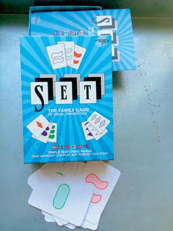 Der findes andet i livet end computere. et godt kortspil kan både samle familien og udfordre hjernen. set hedder spillet, der "sætter logikken på prøve". og det viste sig at være sandt. vi testede spillet med deltagere i alderen 10 til 50+, og al le var med efter et par forklarin ger. spillet gav både latter og eftertanke.