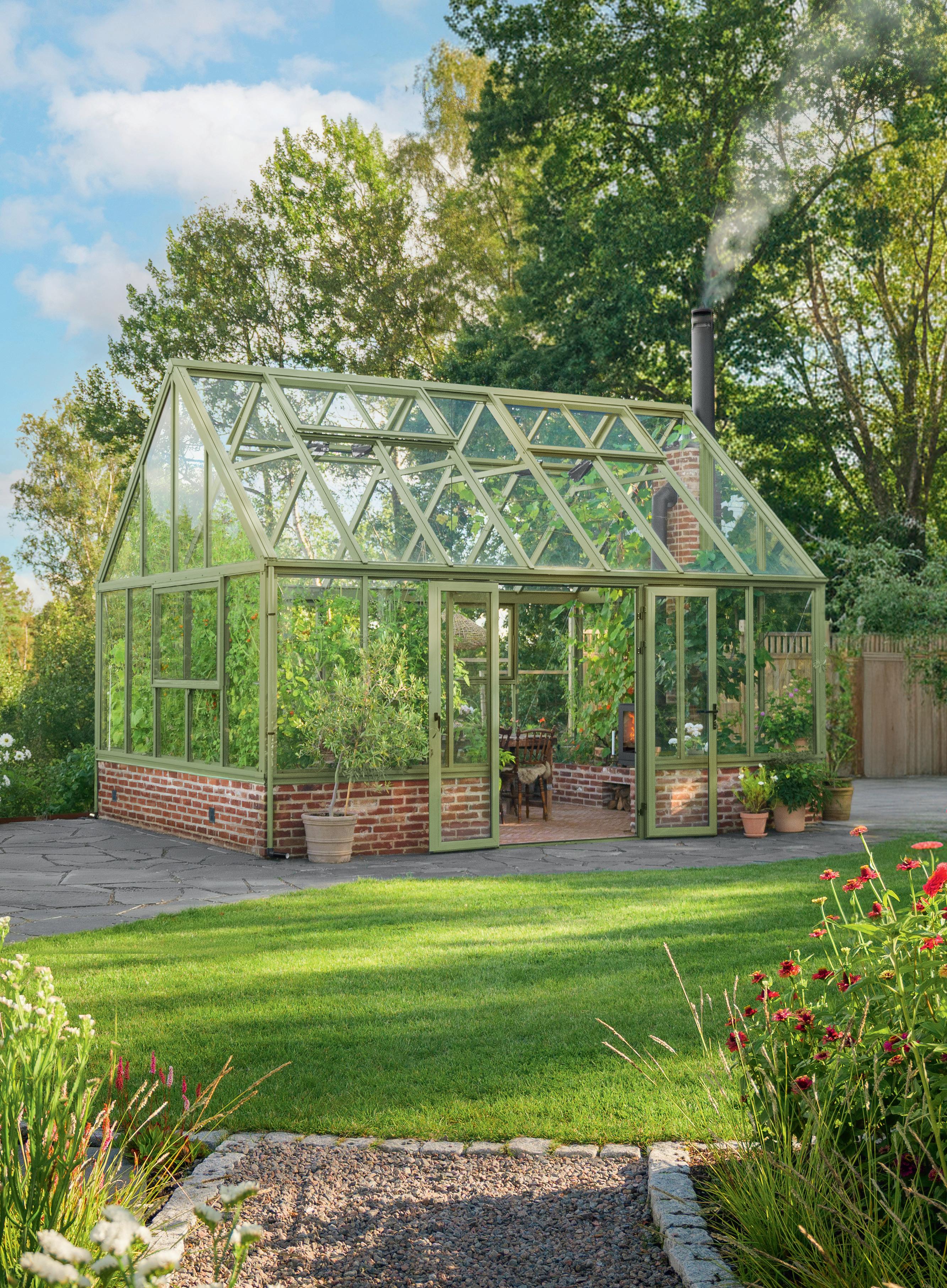– Et drivhus er egentlig et ekstra rom i hagen. Her kan han følge årstidene på nært hold – fra de første spirene om våren til sensommerens bugnende planter. Men drivhuset brukes like ofte til helt andre ting.