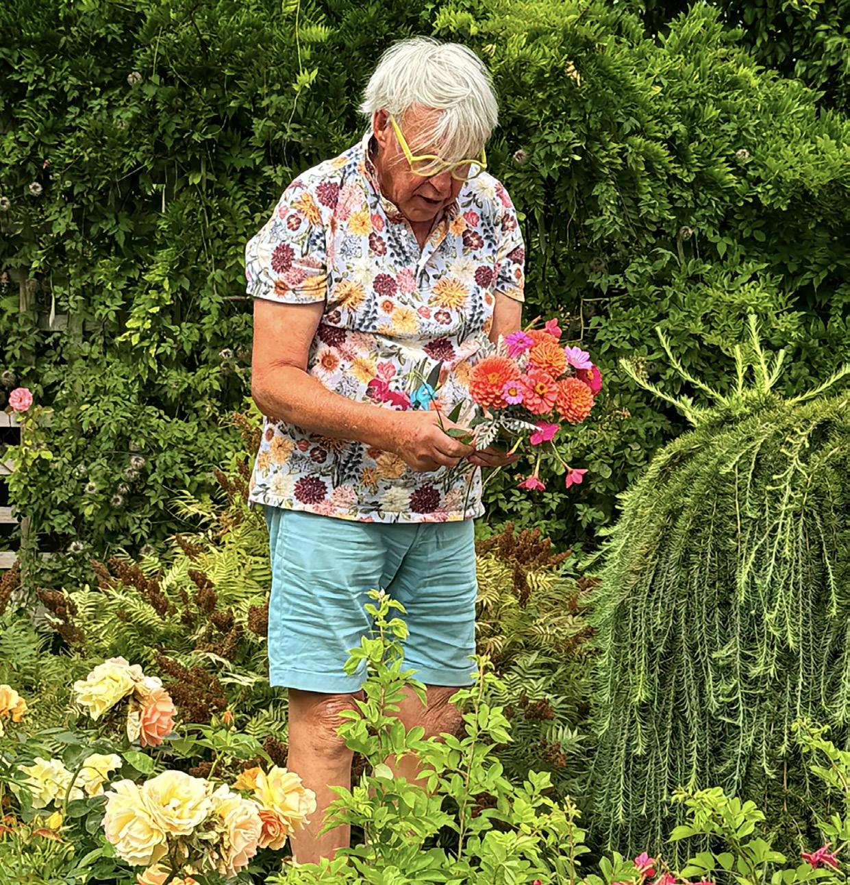 Her inviterer han venner på lunsj. Her arrangerer han små blomster-eventer. Her kan han sitte alene og nyte stillheten. – Det er blitt et naturlig samlingspunkt i hagen.