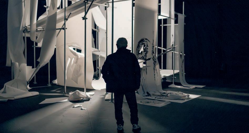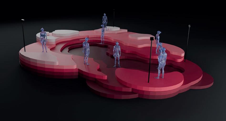 He performs the music live, as if he were a medium inviting the spirits to speak, while the audience is free to wander or sit among the fragmented 3D scans of the village that appear before their eyes. They are invited to interact with each other and the environment.