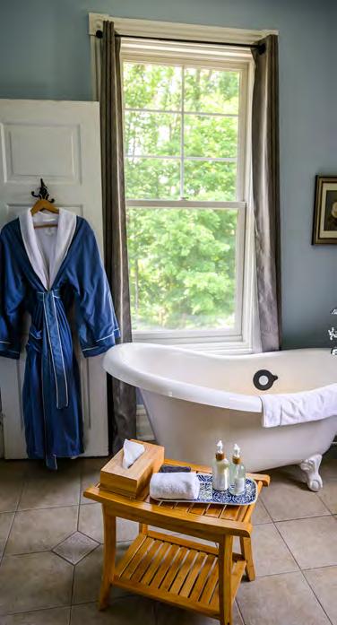 All totaled, the 10 rooms/suites can sleep 24. Kedri says booking the entire weekend for reunions or weddings is an advantage for that number of guests. Amenities include robes, a hair dryer, specialty bath soaps, shampoos and personal items as well as cookies and a hot pot in each room.