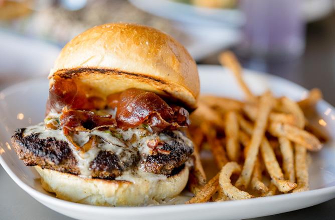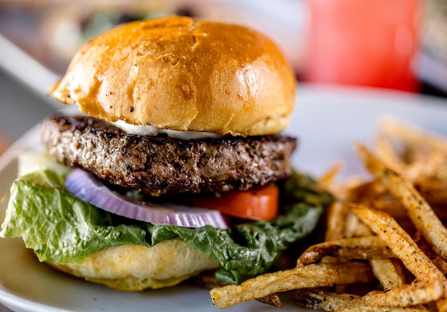 But who can resist trying a meal named after the restaurant itself? The uncorkd Burger delivers fullflavored, high-quality Hereford beef (typically leaner than Angus) packed with a cacophony of burger-enhancing add-ons: zesty red onion slices, Roma tomato, Romaine lettuce, a round of justfirm fresh mozzarella cheese, plus garlic aioli dressing. Add chips or house-made fries and/or Caesar salad with shaved cheese (for a slight upcharge) along with a glass of House Red or Yuengling Lager, and you’re fast-tracked to Americana heaven.