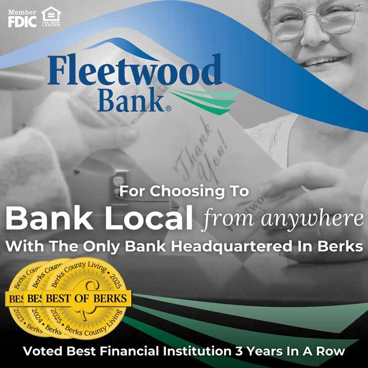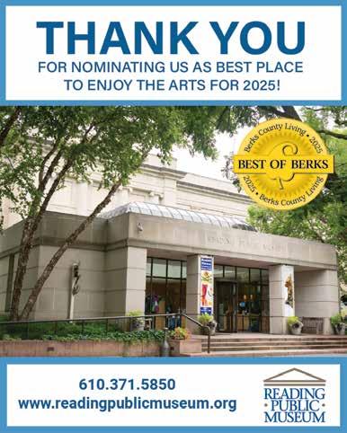 POSTMASTER: Send address changes to Berks County Living, PO Box 293142, Kettering, OH 45429. Berks County Living (ISSN 1542-9334) is published monthly by IDP Publications, 3245 Freemansburg Avenue, Easton, PA 18045-7118. Annual subscriptions are $19.95. (Canadian and foreign one-year rate is $40, US funds only.) Single copy price $3.95. Periodical postage paid at Easton, PA and additional mailing office. All contents © Berks County Living 2025. Nothing contained herein may be reproduced in whole or in part without the expressed written consent of the publisher. Publisher disclaims all responsibility for omissions or errors. All rights reserved. We welcome, but cannot be responsible for, unsolicited manuscripts, contributions, or photographs. Unsolicited materials cannot be returned unless accompanied by a self-addressed, stamped envelope. Printed in USA.