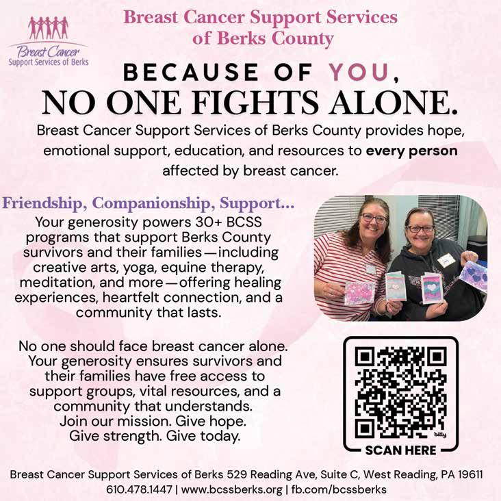 Subscriptions: For new subscriptions, changes of address or questions involving an existing subscription, call 800.896.1392, Mon-Fri, 9am-4:30pm, EST. High-quality reprints of articles that appear in Berks County Living are available by emailing RJones@ BerksCountyLiving.com. Back issues are available subject to inventory. Find Us Online: To contact our staff, get advertising information, obtain writer and photographer guidelines, submit an event for the Calendar of Events, or to be included in the Dining Guide, visit our website: www.BerksCountyLiving.com.