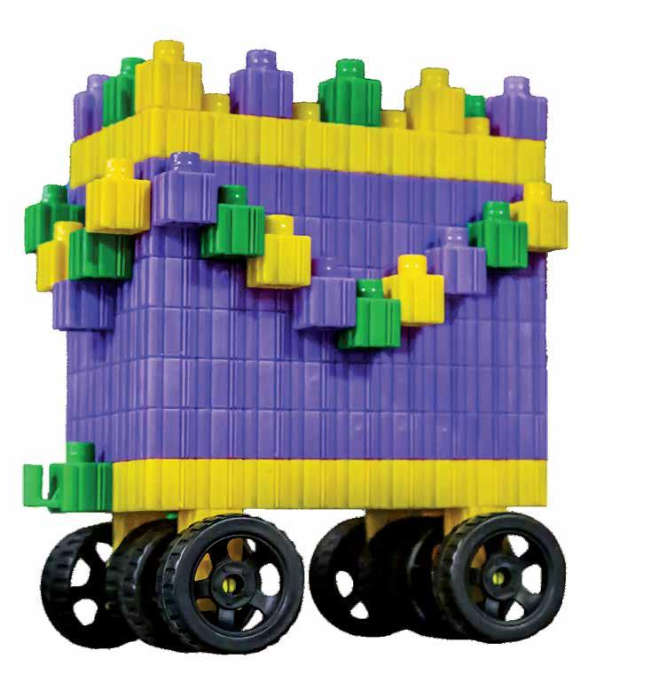 There are custom Snapo sets for Mardi Gras that can be crafted into throws. Kennedy-Kline’s firm also manufactures hand-strung bead throws and plastic dragon eggs for the Excaliber crew in the parades.