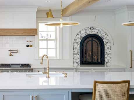 throw blankets and plush pillows instantly cozy up the hearth area,” explains Bush. “Baskets filled with firewood or blankets not only look beautiful but also serve a purpose.”