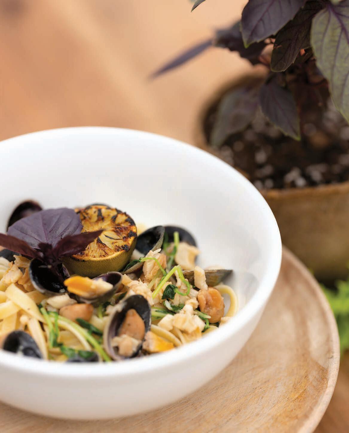 The Coral Fang punch bowl, pictured here, combines freshpressed ruby red grapefruit juice, exotic aperitifs and hopped grapefruit shandy. Fetter calls it a dry cocktail that is sure to quench guests’ thirst and keep them cool this summer. “With botanicals in gin pushing forward a hibiscus rose tea for structure, this punch has a uniquely refreshing flavor profile which makes for easy drinking.”