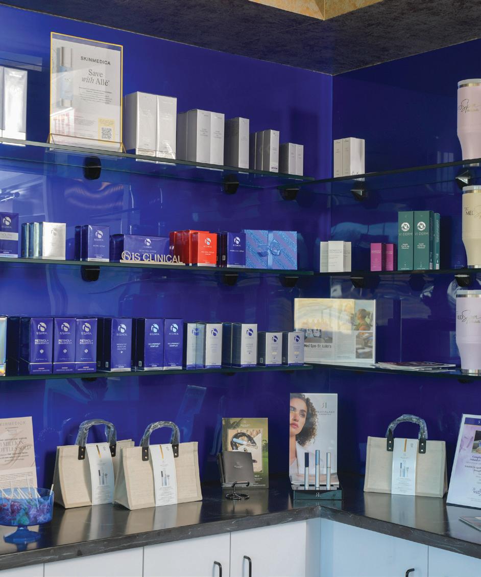 Wolf emphasizes “the bigger picture of health,” noting that things like stress, sleep and hormones can significantly affect the skin. She turns the medical guidance of a dermatologisttrained physician assistant and a team of plastic surgeons into a comprehensive skincare experience. She goes beyond the “spa” to educate clients on a results-oriented, personalized skincare routine.