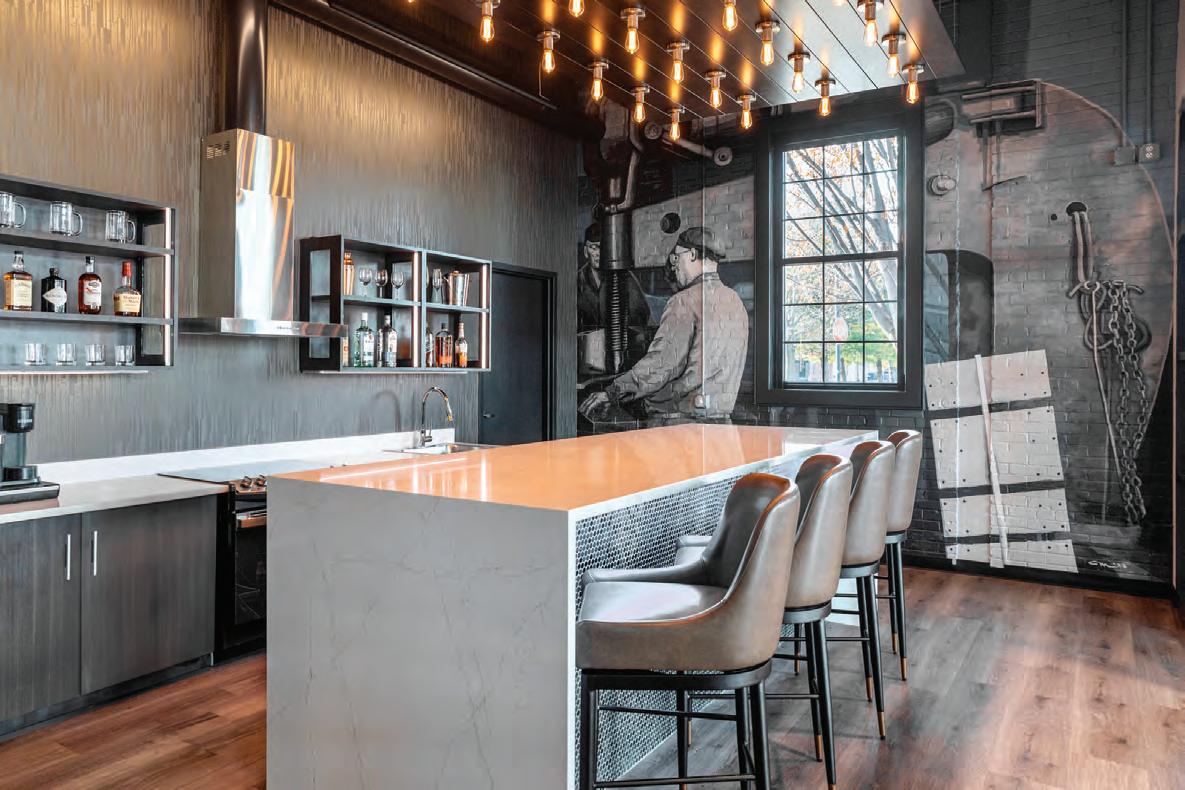 [Right] The proximity to the former Bethlehem Steel factory is sentimental to DaRe, as his grandfather and greatgrandfather worked a combined 80 years in the Bethlehem Steel Industry. In fact, one of the upgrades to the building includes a mural of his great grandfather in the kitchen area, named “The Bull” in his memory. The mural was painted by local artist Matt Halm.