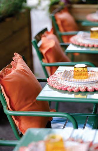 That laid-back sense fuels the ambiance, rich in color and layered details, making La Maya a feast for the eyes as well as the palate. Mother/daughter designers April Wilson and Gabrielle DiFrancesco, respectively, set out to transform “the square white box”—the décor of the juice bar that previously occupied the space—into a