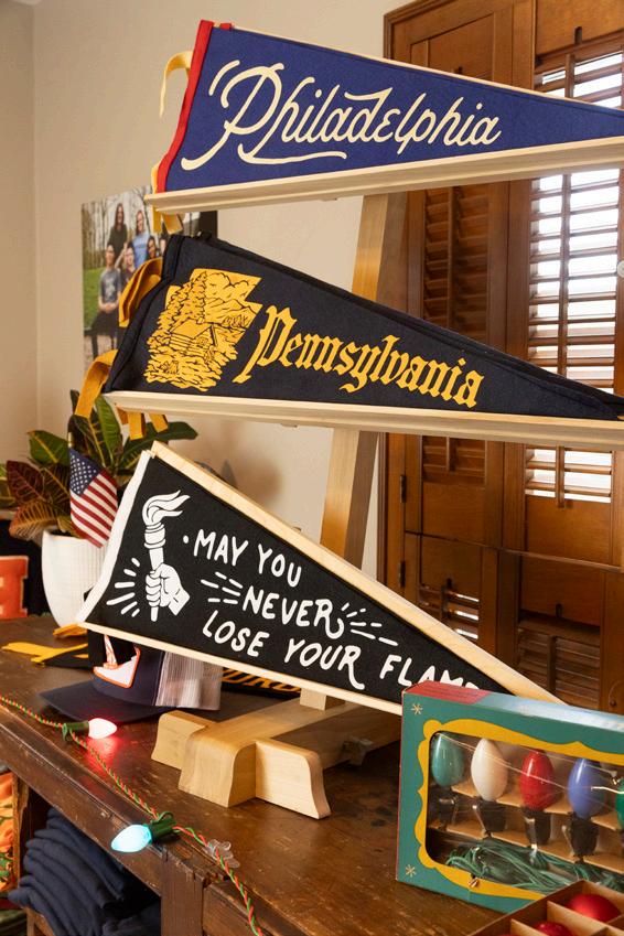 Goulet first sold his goods online and at art shows throughout the region. Now, Stay Apparel has a permanent home behind the Hershey History Center, in an 18th-century milk house where Milton Hershey School students once learned agricultural trades. The shop began with Goulet’s ongoing relationship with the Hershey History Center, where he researched area history and sold his items in the gift shop. For the 2023 holidays, he transformed the center’s vintage trolley station into the Holly Jolly Trolley Stop Pop-up Shop, stocked with Stay Apparel goods and heirloomstyle toys and gifts.