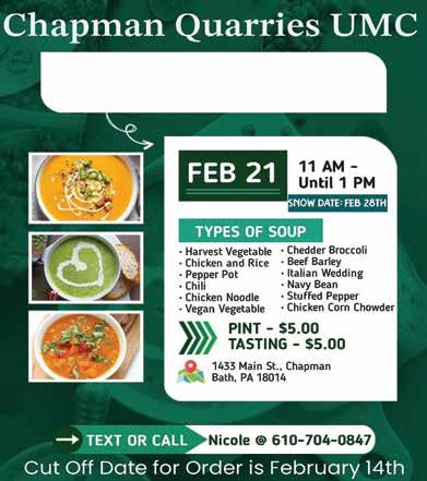 Cherryville- Open Monday-Friday 9 a.m. to 2:30 p.m., 4131 Lehigh Drive, Cherryville. FMI call 610-767-2977.