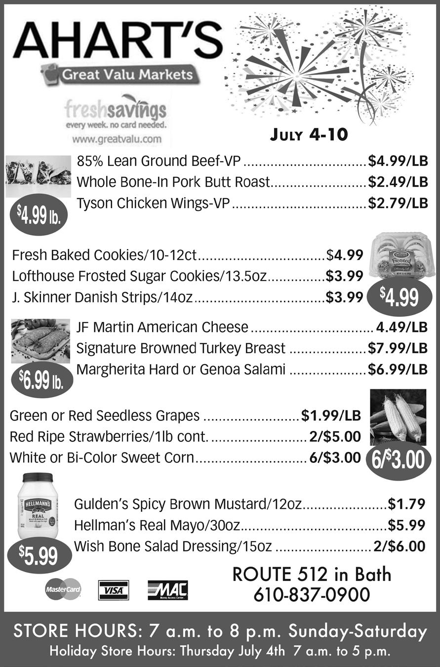 Borough of Bath Community-Wide Yard Sale- Saturday, September 7 from 8 a.m. to 4 p.m. Yard sale permit fees waived this date only. Community Dinner at The Table- First and third Tuesdays of the month at 5:30 p.m. at 1769 Newport Ave., Northampton. All are welcome.