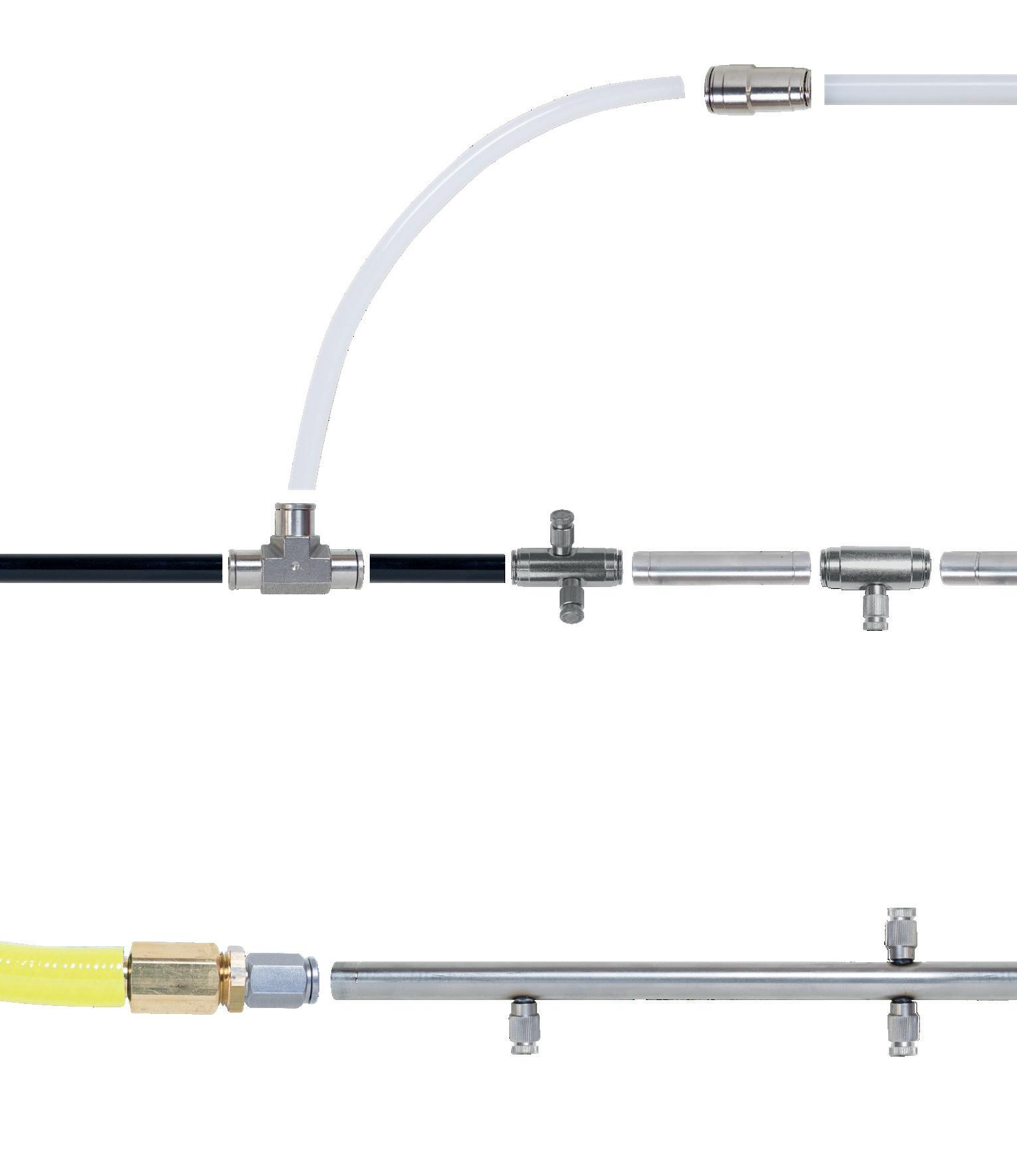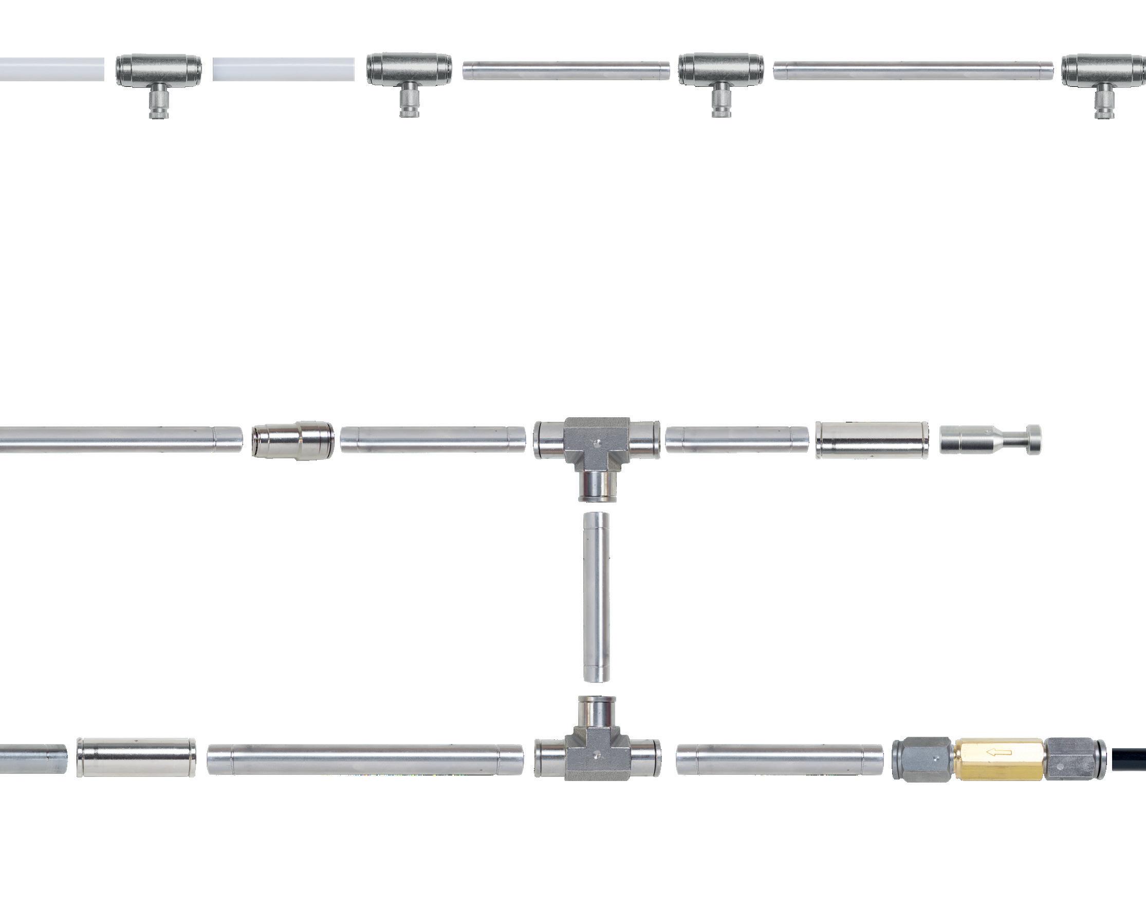 A revolución para sistemas de pulverización en línea: - emptype ensamblaje y ensamblaje de líneas; - 80% del tiempo ahorrado para ensamblar la línea, en comparación con el ogive; - cerradura antideslizante de unión única tanto para tubos de acero inoxidable como para tubos de poliamida; - ahora es posible componer líneas utilizando tubos de diferentes diámetros.