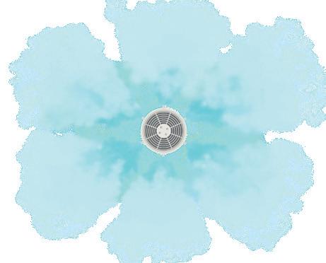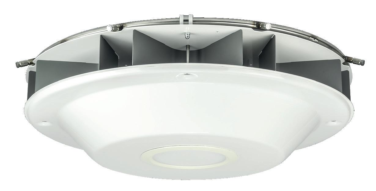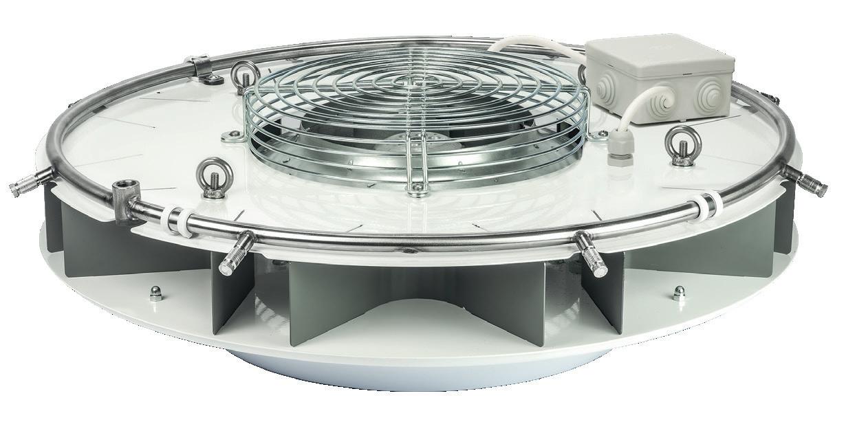 Fan 360° Panorama Led. Une vitesse, prévu pour montage plafond, avec couronne pour 8 buses, couleur blanc, débit d'air 600m3/h, 100W, 230V-50Hz. Couverture 95m2