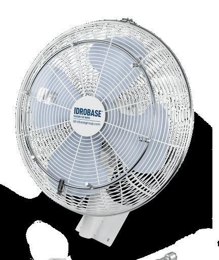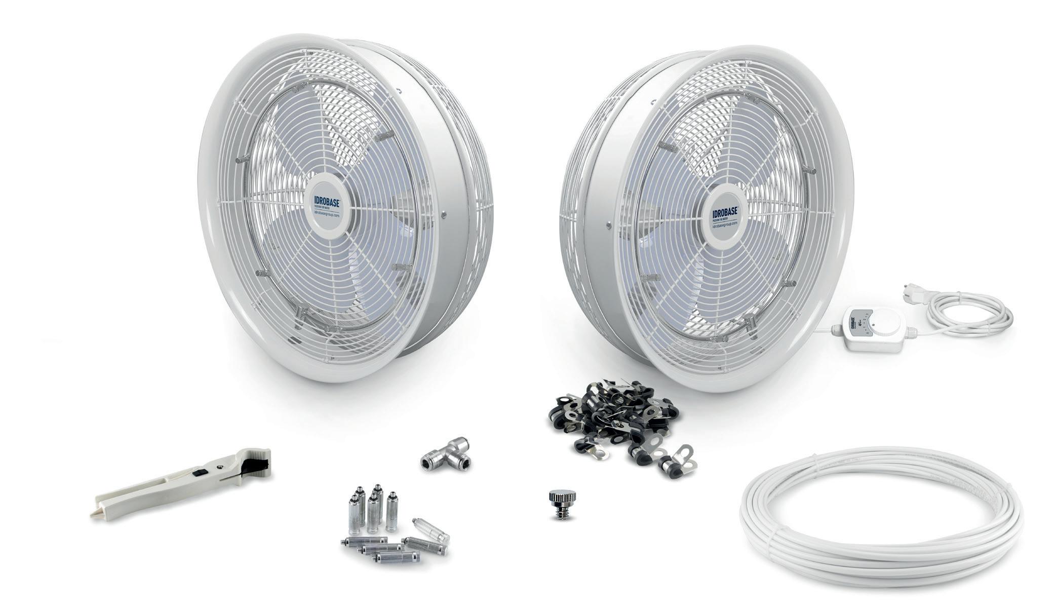 Ventilateur Mist Fan 20”- 51,5cm 3 vitesses, oscillation 90°, complet d'étrier de fixation, couronne en acier Inox AISI 304 avec 6 trous pour montage mural, couleur blanc, longueur câble d'alimentation 2,2m. Débit d'air 10.280m3/h, 142W, 230V-50Hz. Couverture 60m2