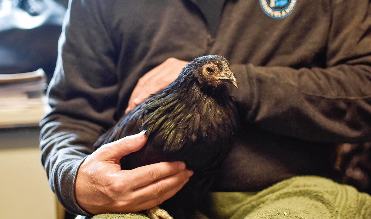Sumi’s 13 years old, Alvey said. Sumatra chickens typically live to be about 8 years old but can live up to 20 with proper care.