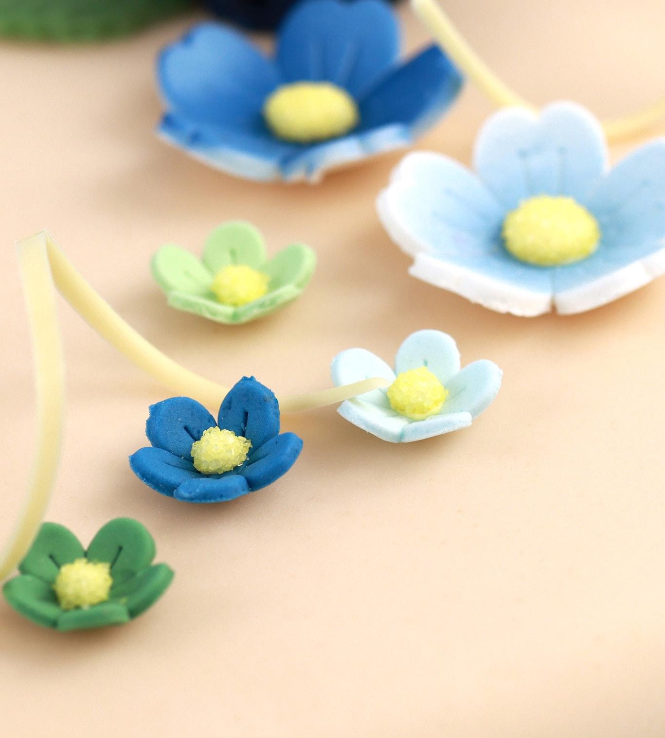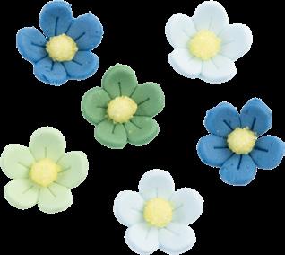 Sukkerpynt Små blomster blå/grønn mix 21 mm, 120 stk